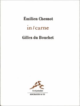 Cela, qui vient au jour, est une absence, mémoire enfouie comme morte, qui teinte soudain l'air en face (« tu entends se formuler dans l'air ce qui advient de ton corps béant... / de ce corps tu cendres le vent ») ou avenir (« oui je courais / entrecoupé d'un long futur »). De ce travail des profondeurs qui affleurent à même le paysage, quelques fois comme déjà formulées par lui (« […] immergé le papier se teinte / de transparence / s'écrit [...] »), les poèmes gardent la trace : les vers en caractères d'écriture droits sont entrecoupés par les fragments d'un autre poème en italique. Poèmes rapiécés donc, comme les blocs peints de Gilles du Bouchet, en regard des poèmes, sont maljoints. Le titre du recueil l'annonçait déjà : l'injonction (« incarne ») est fendue (« in / carne »), et suggère l'impossibilité de prendre corps autrement que dans une perpétuelle scission.