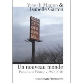 Anthologiste patenté, Henri Deluy signalait que les anthologies génèrent en poésie les meilleures ventes. On peut en ce sens citer Pièces détachées de Jean-Michel Espitallier (Pocket/Havas, 2000 puis 2011), probablement autour de 30 000 exemplaires vendus (on suppute puisque les éditeurs n’éventent pas leurs chiffres), qui bénéficia, outre sa qualité intrinsèque, du prix attractif d’un format de poche. En 314 pages, on avait là « une anthologie de la poésie française d’aujourd’hui », une photographie d’un état donné à un instant t, une vision synchronique là où Un nouveau monde, l’anthologie cosignée paritairement par Y. di Manno et I. Garron, propose un regard diachronique puisque l’ouvrage est sous-titré « Poésies en France. 1960-2010 ». Parue dans la collection « Mille&une pages », elle compte 1526 pages (au titre courant trop présent) pour un prix de 39 euros : un « pavé » à ce prix peut être dissuasif pour qui souhaiterait plonger dans le microcosme, d’autant que la couverture est peu attractive, principalement du fait d’une photographie (d’I. Garron) aux teintes grises avec une enseigne portant un message en anglais (non traduit par la suite) : imagine-t-on la couverture d’une anthologie de poésie étatsunienne avec un message en français ? On remarquera aussi qu’en quatrième de couverture qui expose les grands traits du projet, la qualité des auteurs n’est pas portée à la connaissance de qui, béotien, y jetterait un œil en librairie et ignorerait qu’Yves di Manno (1954) est l’émérite directeur de la collection Poésie chez Flammarion éditeur de l’anthologie, ce qui, aux yeux de certains, pose un triple problème « épistémologique, méthodologique et déontologique » (Fabrice Thumerel, Libr-critique, 23 mars 2017). De fait, sur les 104 auteurs principalement retenus, 44 ont publié au moins un livre dans la dite collection. Ce n’est pas un mal en soi, et on ne peut reprocher à Y. di Manno d’avoir l’esprit-maison (ou corporate), mais avoir connaissance de ce biais, comme du fait qu’il publia un ouvrage sous l’égide de Java, permet au lecteur d’ajuster sa lecture. Itou du fait qu’Isabelle Garron (1968) fut membre du comité de rédaction d’Action Poétique et participa à l’émission Peinture fraîche (France Culture) de Jean Daive : ces proximités ne sont pas blâmables mais elles ont pu contribuer à orienter l’ouvrage et méritaient, à notre avis, d’être connues du lecteur dès la couverture.